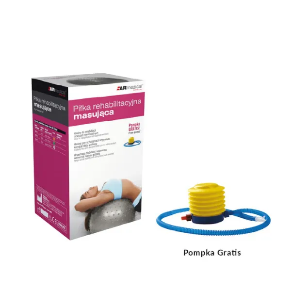 Piłka rehabilitacyjna masująca znajduje zastosowanie zarówno w sporcie jak i rehabilitacji. Wzmacnia mięśnie, uelastycznia je, odciąża stawy oraz poprawia zdolność koordynacji. Sprawdza się w treningu ogólnorozwojowym, poprawia kondycję. Na całej swej powierzchni posiada gumowe wypustki – kolce, które stymulują receptory. Poprawia czucie, wzmaga ukrwienie poprzez masowanie danej okolicy ciała. W zestawie znajduje się pompka, którą można regulować stopień twardości piłki. Maksymalne obciążenie 250 kg. Kolor piłki odpowiada jej średnicy: pomarańczowa - 55 cm, zielona - 65 cm, szara - 75 cm.