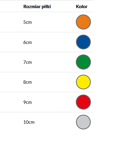 ► kolor piłeczki odpowiada jej średnicy (wielkości)
