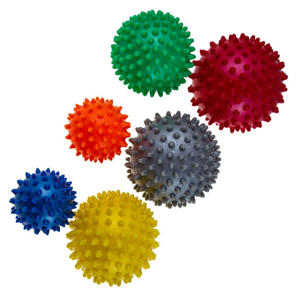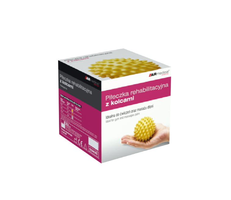 Miękka piłeczka rehabilitacyjna z kolcami, przeznaczona jest głównie do ćwiczeń i rehabilitacji ręki. Można ją również stosować jako narzędzie do masażu każdej części ciała. Wypustki (koce), w które wyposażona jest piłeczka masują receptory oraz pobudzają krążenie krwi. Może być także stosowana jako piłeczka antystresowa. Dzięki swej plastyczności sprawdza się także jako piłka sensoryczna. Piłeczki sensoryczne to świetne narzędzie wykorzystywane w rehabilitacji zarówno dzieci, jak i osób dorosłych. Piłeczka wyposażona jest w wentyl, którym można regulować jej twardość, przez stopień napompowania. Maksymalne obciążenie to 260 kg. Występuje w sześciu kolorach i rozmiarach.