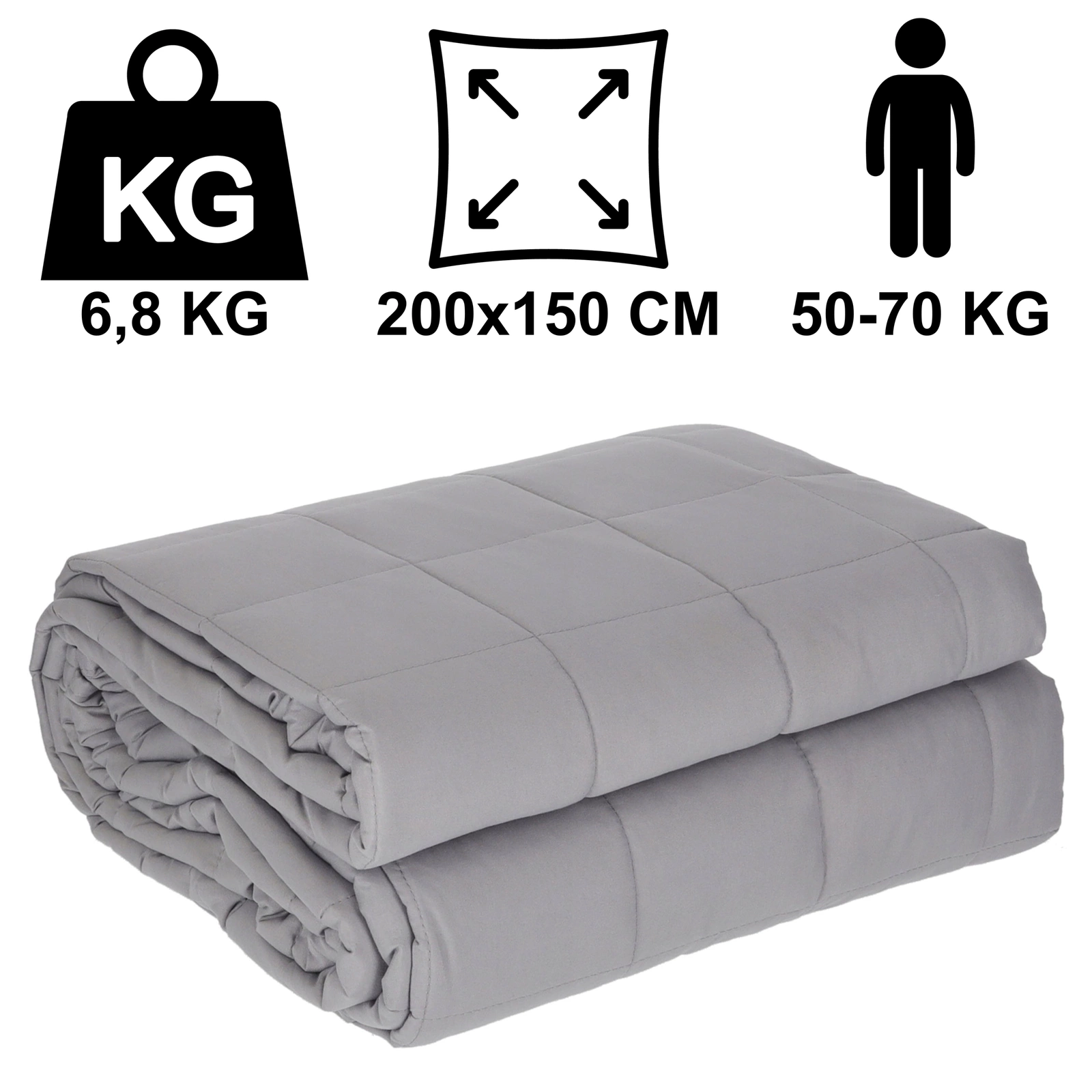 Koc sensoryczny o wadze 6,8 kg, odpowiedni dla osób ważących około 50-70 kg.