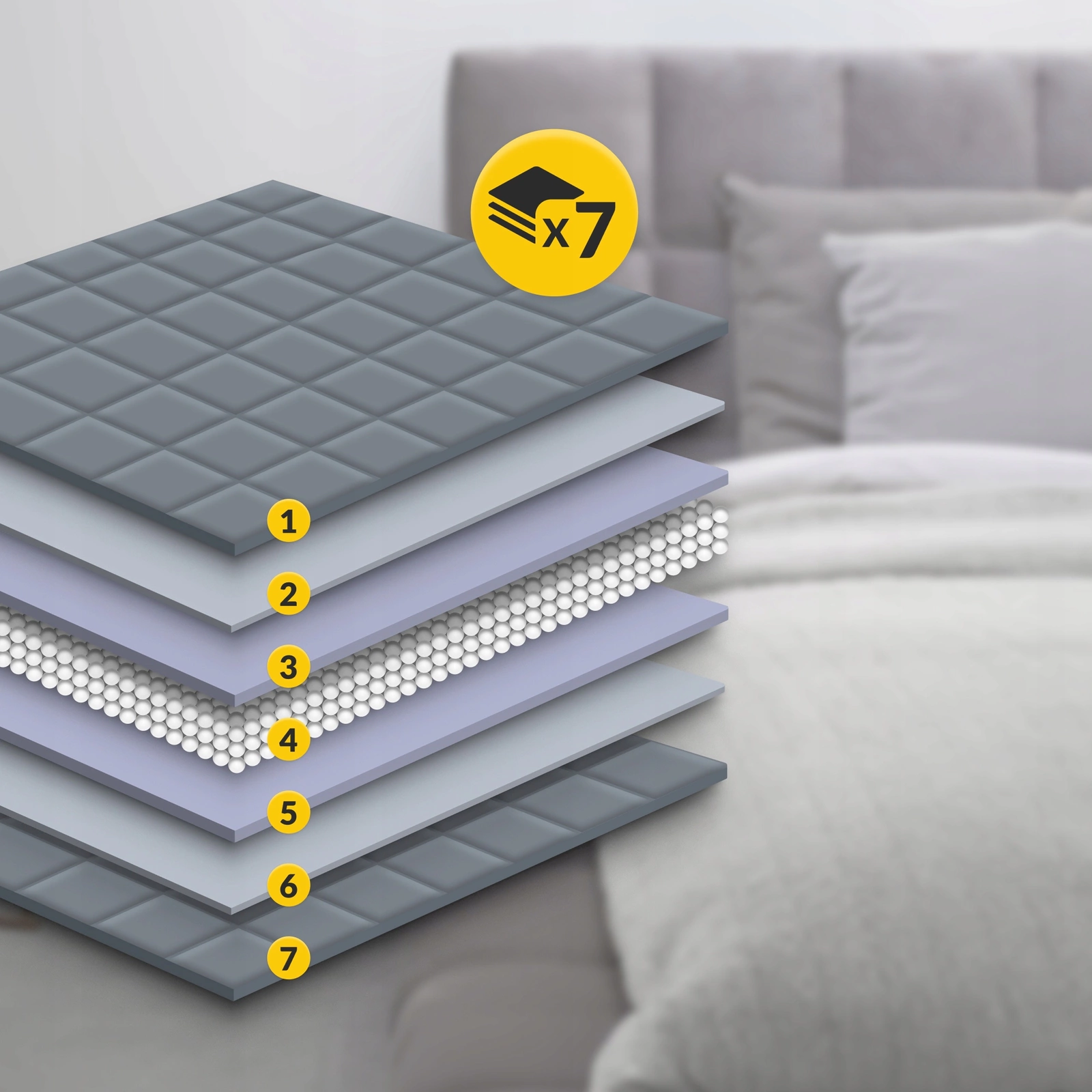 - Materiał: 7-warstwowa konstrukcja z mikrofibry i włókniny.