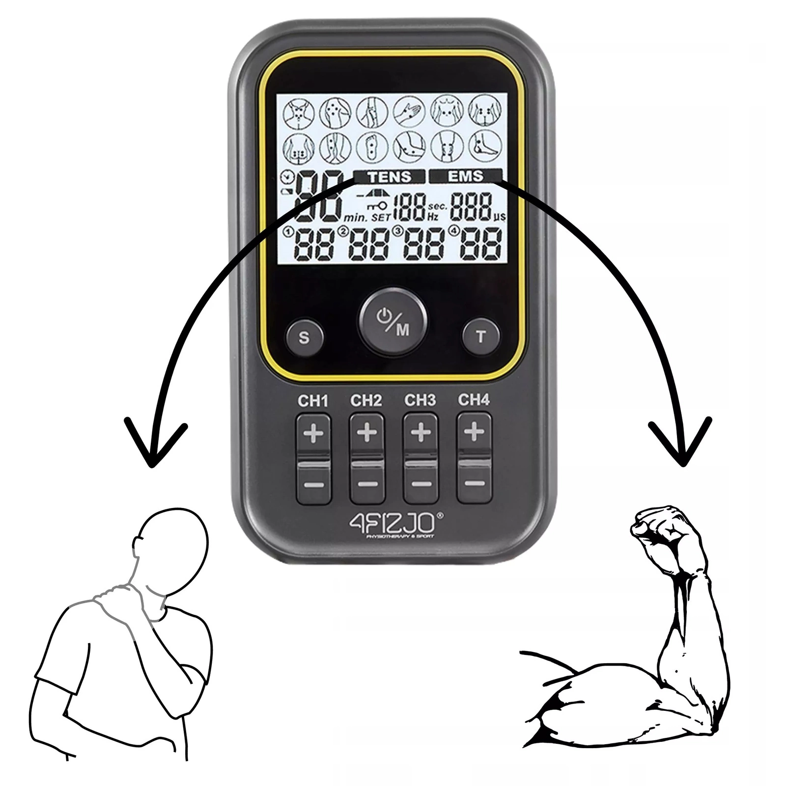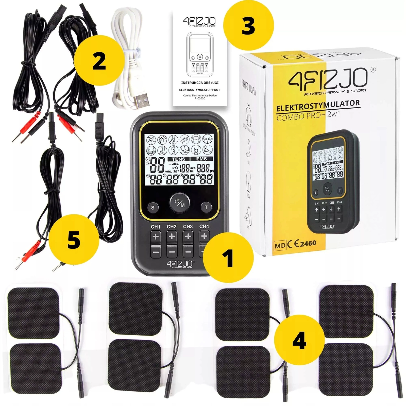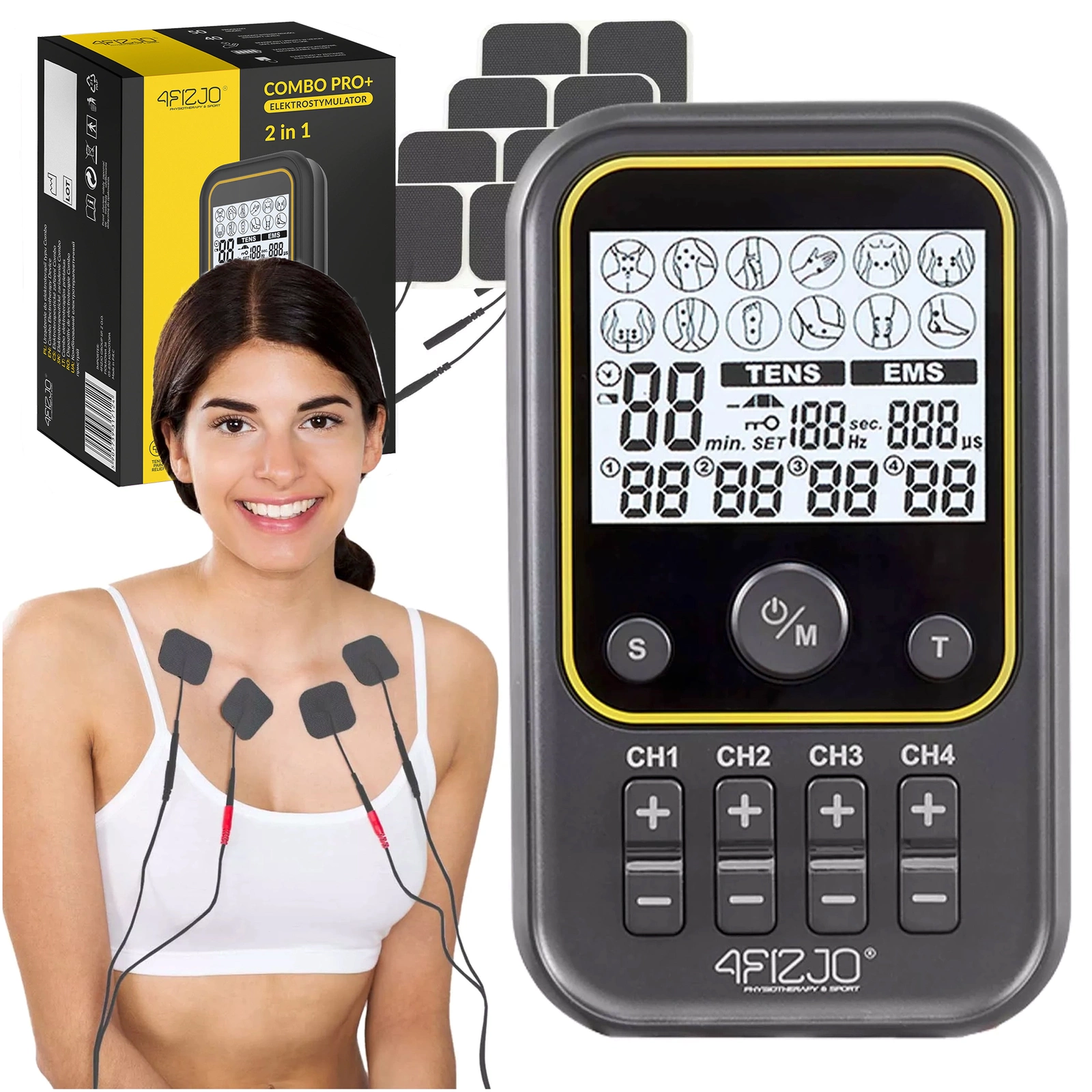 ELEKTROSTYMULATOR MIĘŚNI TENS I EMS COMBO PRO+ 4FIZJO