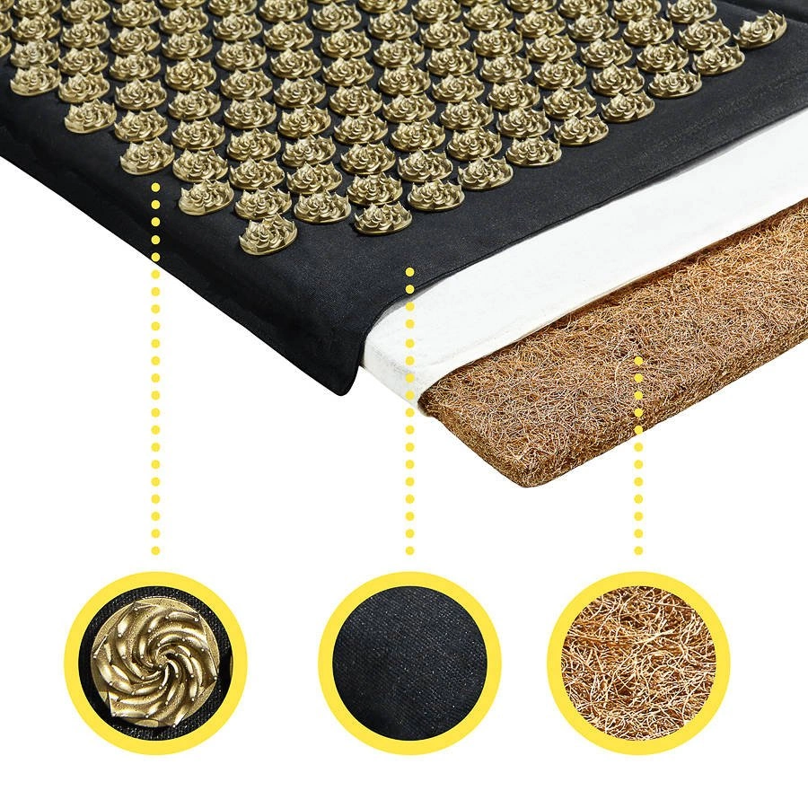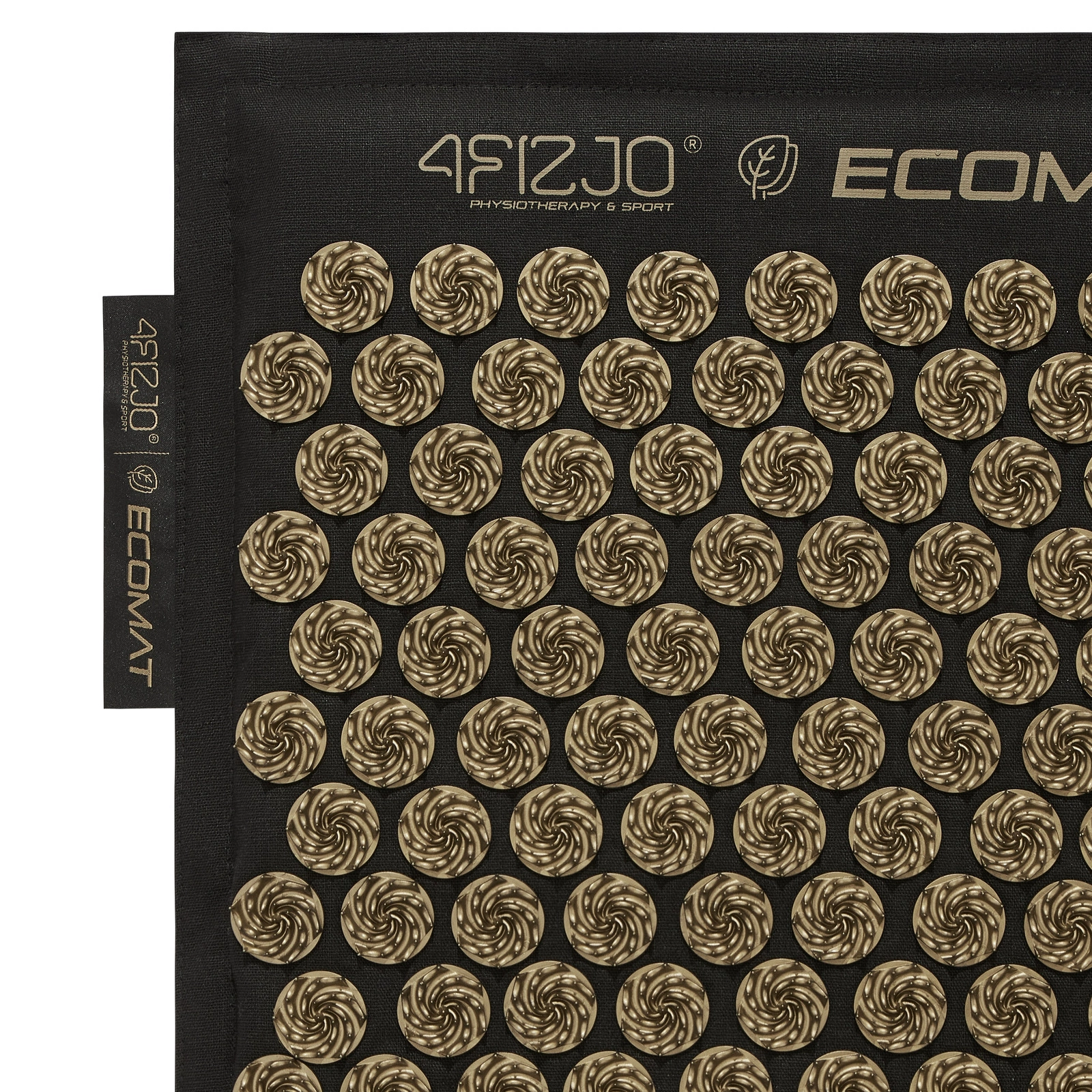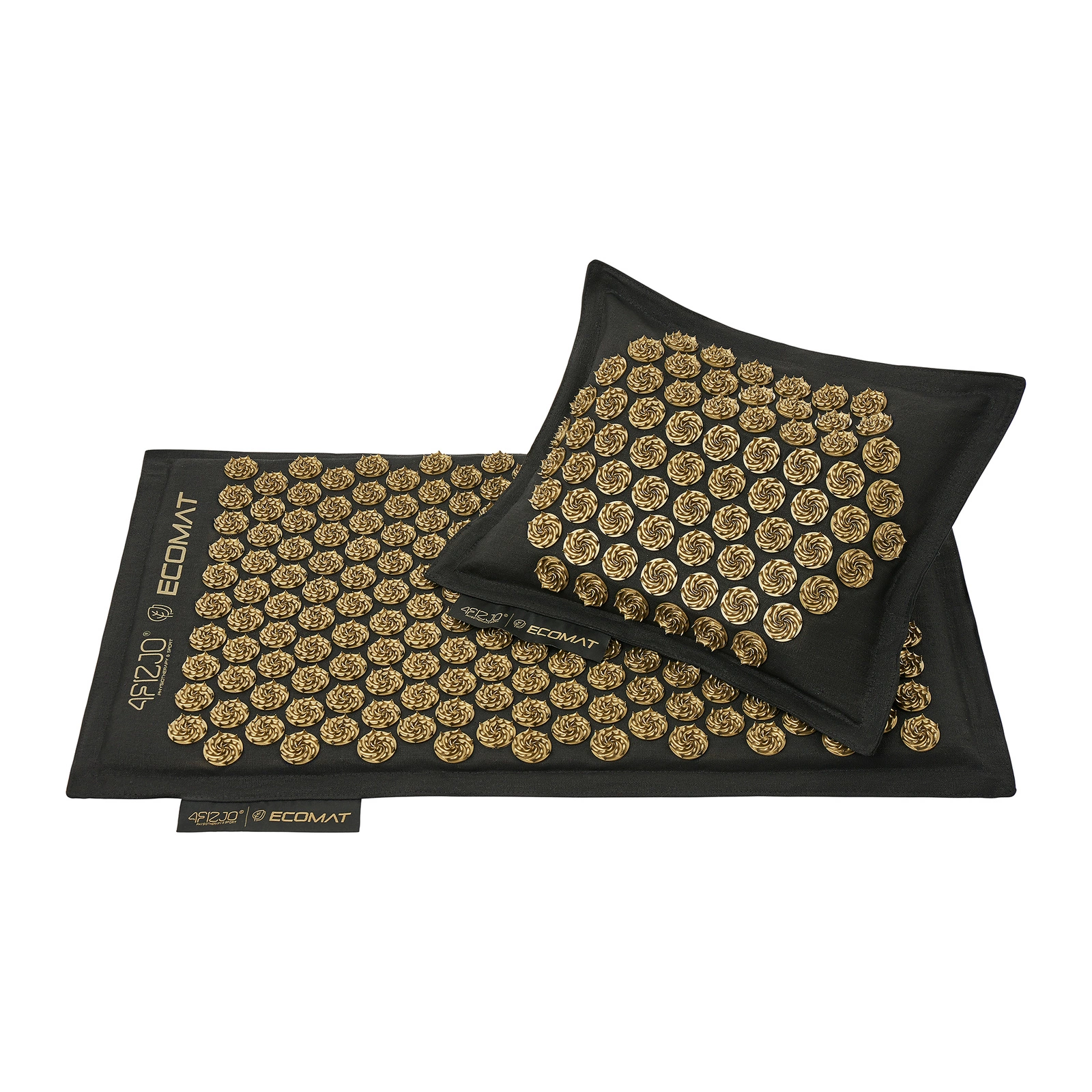 ECO MATA z poduszką, do akupresury, z łuskami gryki i kokosem 68x42 (CZARNO-ZŁOTA)