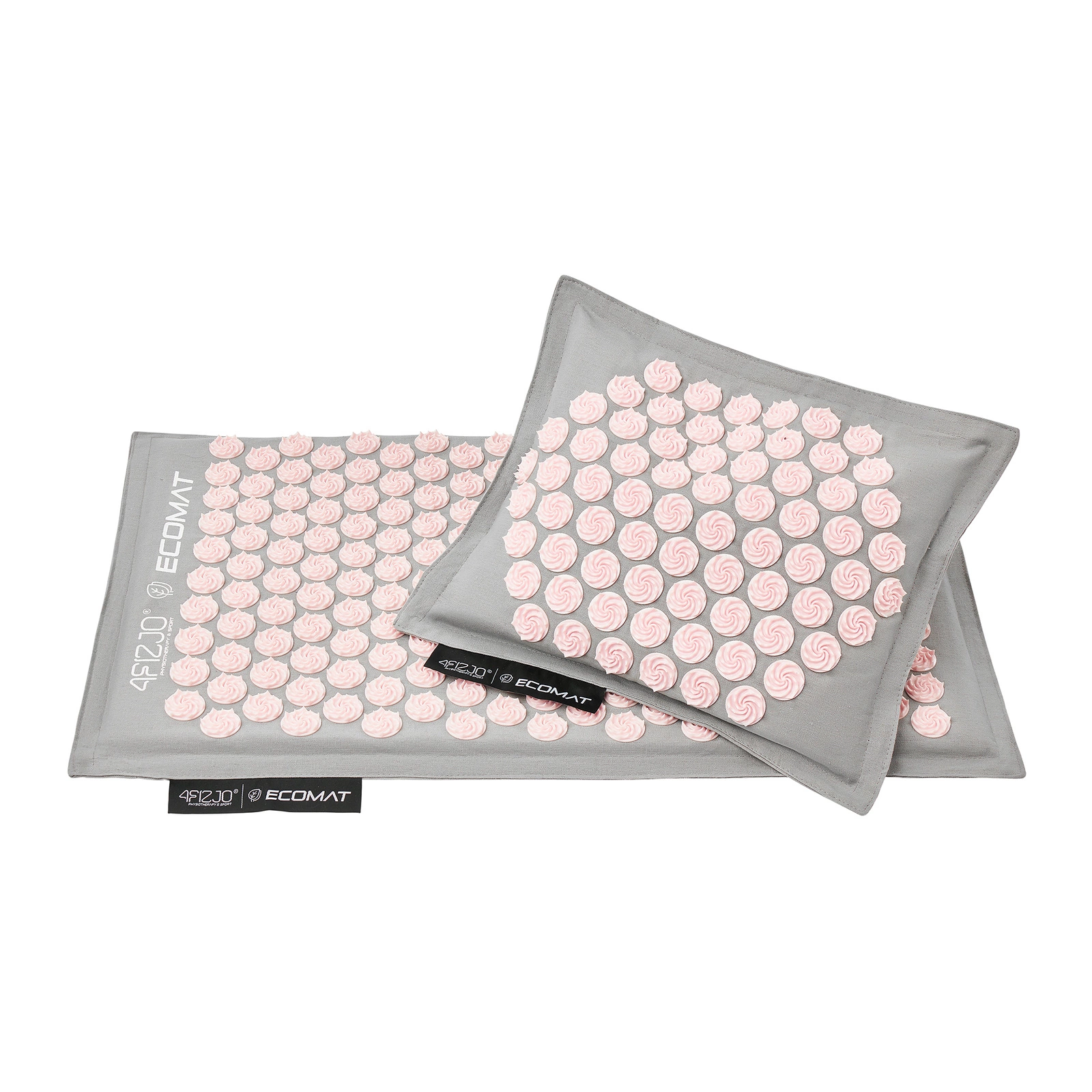 ECO MATA z poduszką, do akupresury, z łuskami gryki i kokosem 68x42 (SZARO-RÓŻOWA)