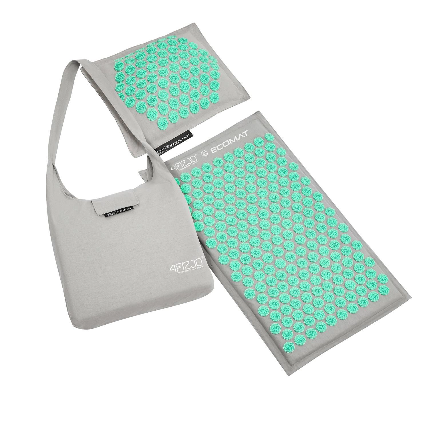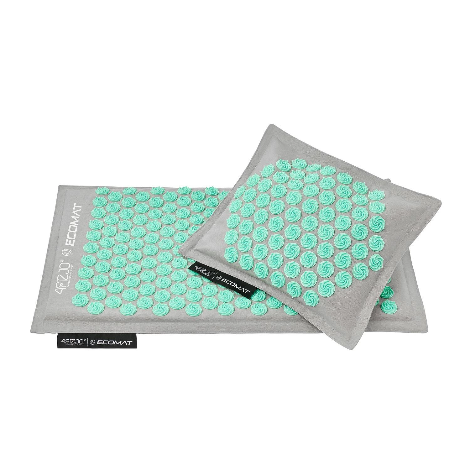 ECO MATA z poduszką, do akupresury, z łuskami gryki i kokosem 68x42 (SZARO-SELEDYNOWA)