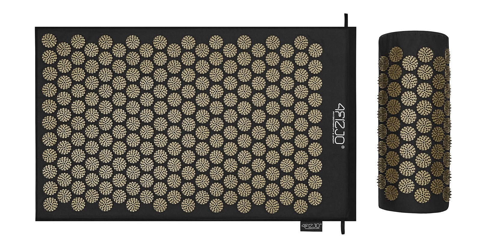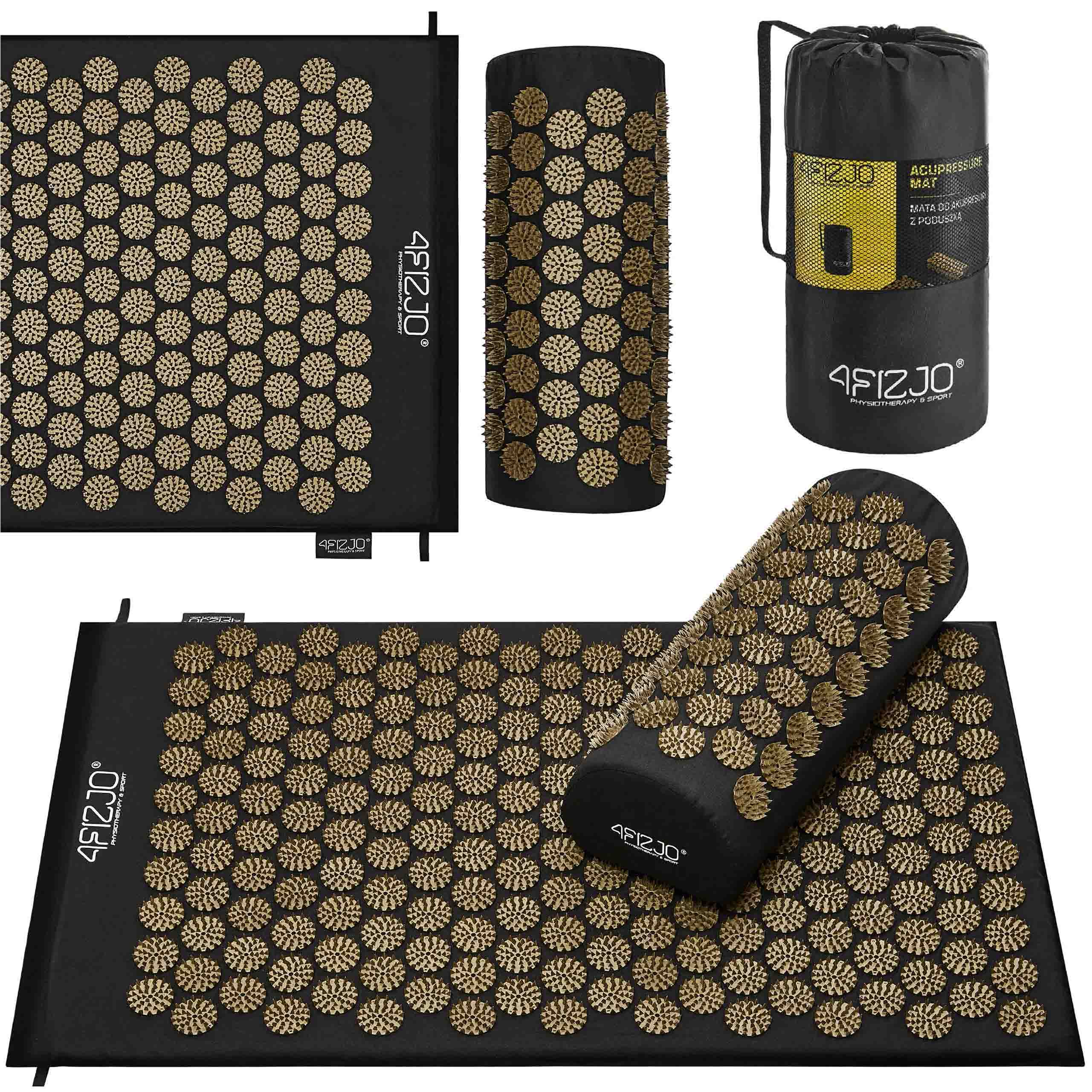 Mata rehabilitacyjna do akupresury z poduszką Acupressure Mat, niwelująca zmęczenie i dolegliwości bólowe, wspomagająca relaksację 68x42 cm (CZARNO-ZŁOTA)
