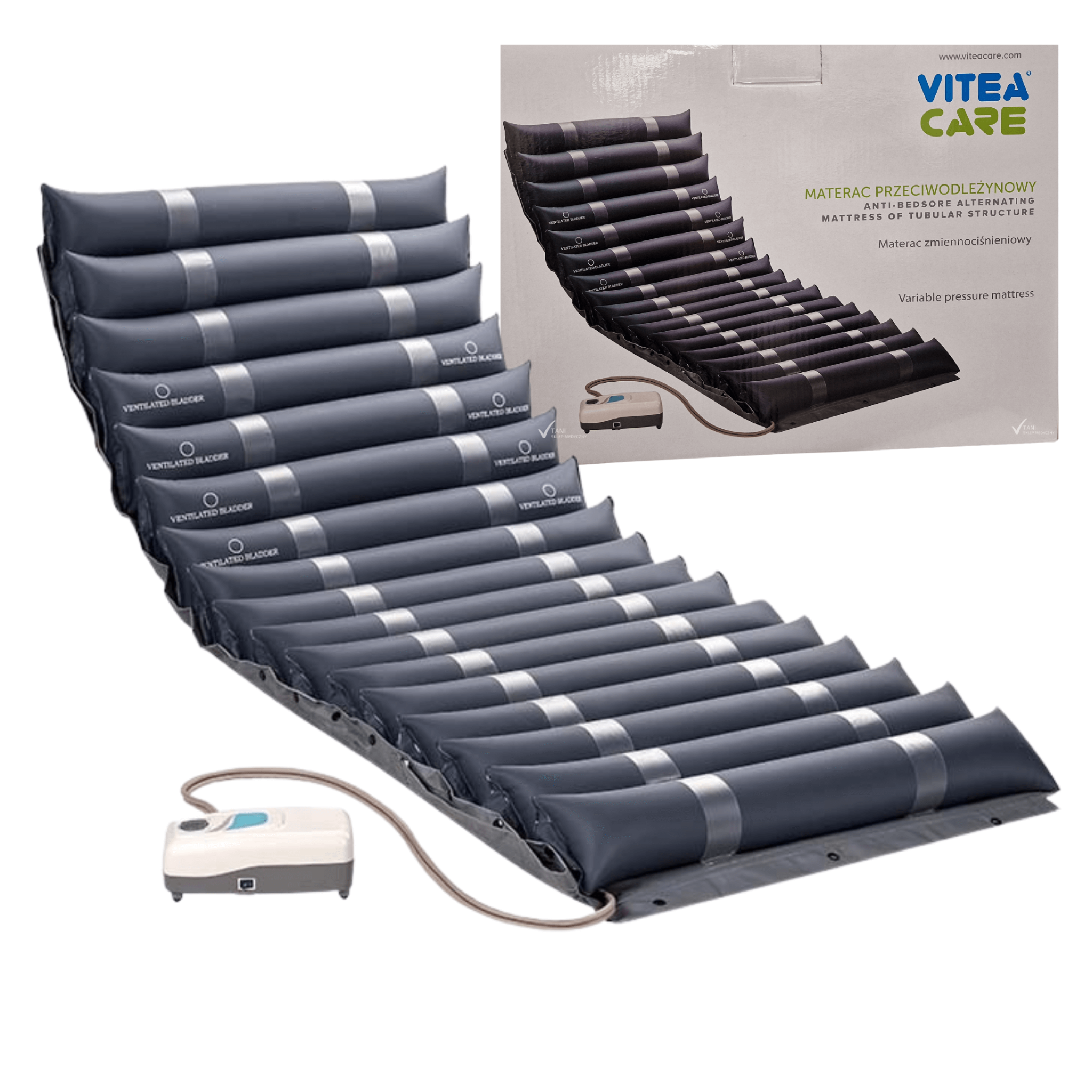 Materac przeciwodleżynowy rurowy z mikrowentylacją Tube Light VCM 502F MDH – zmiennociśnieniowy materac na odleżyny z pompą, 17 komór, regulacja ciśnienia, wyrób medyczny do profilaktyki i leczenia odleżyn