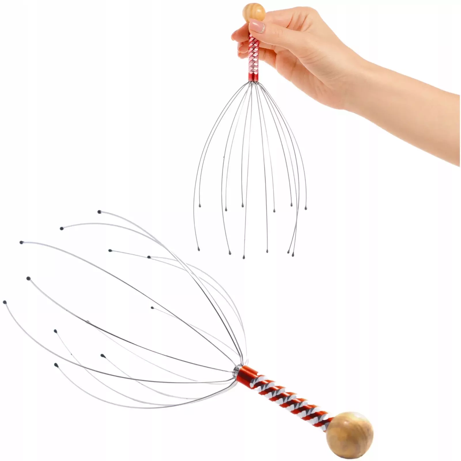 Metalowy ajurwedyjski masażer do skóry głowy z 12 igłami 4FIZJO, relaksujący i stymulujący cebulki włosów (20x8cm)