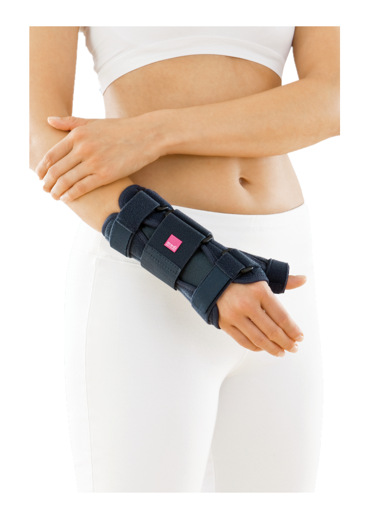 Aluminiowa szyna ortozy jest elastyczna i może być łatwo dostosowana do dłoni, co gwarantuje idealne dopasowanie. Materiał Airtex firmy Medi zapewnia przyjemne uczucie podczas noszenia dzięki swojej oddychalności.