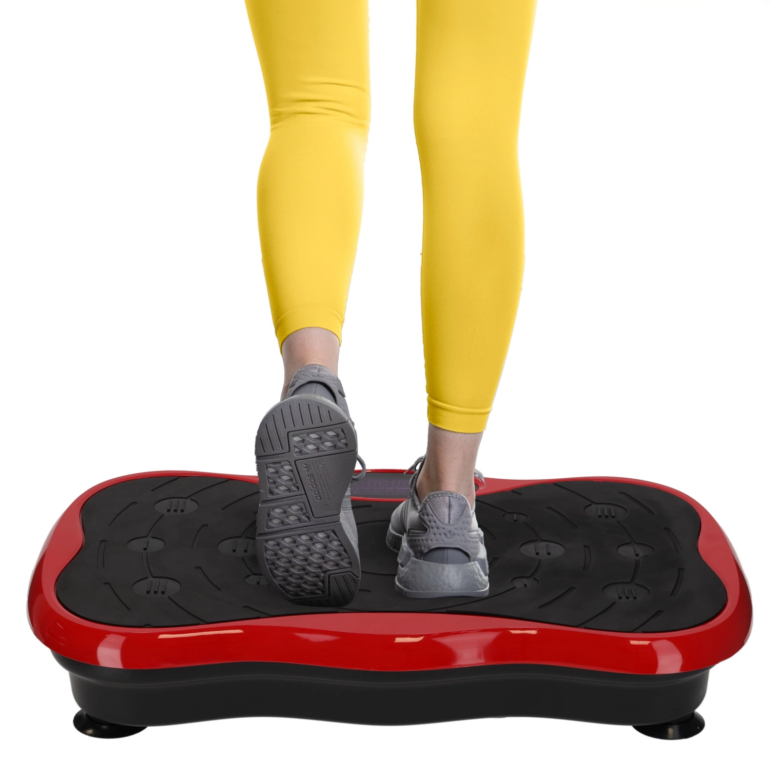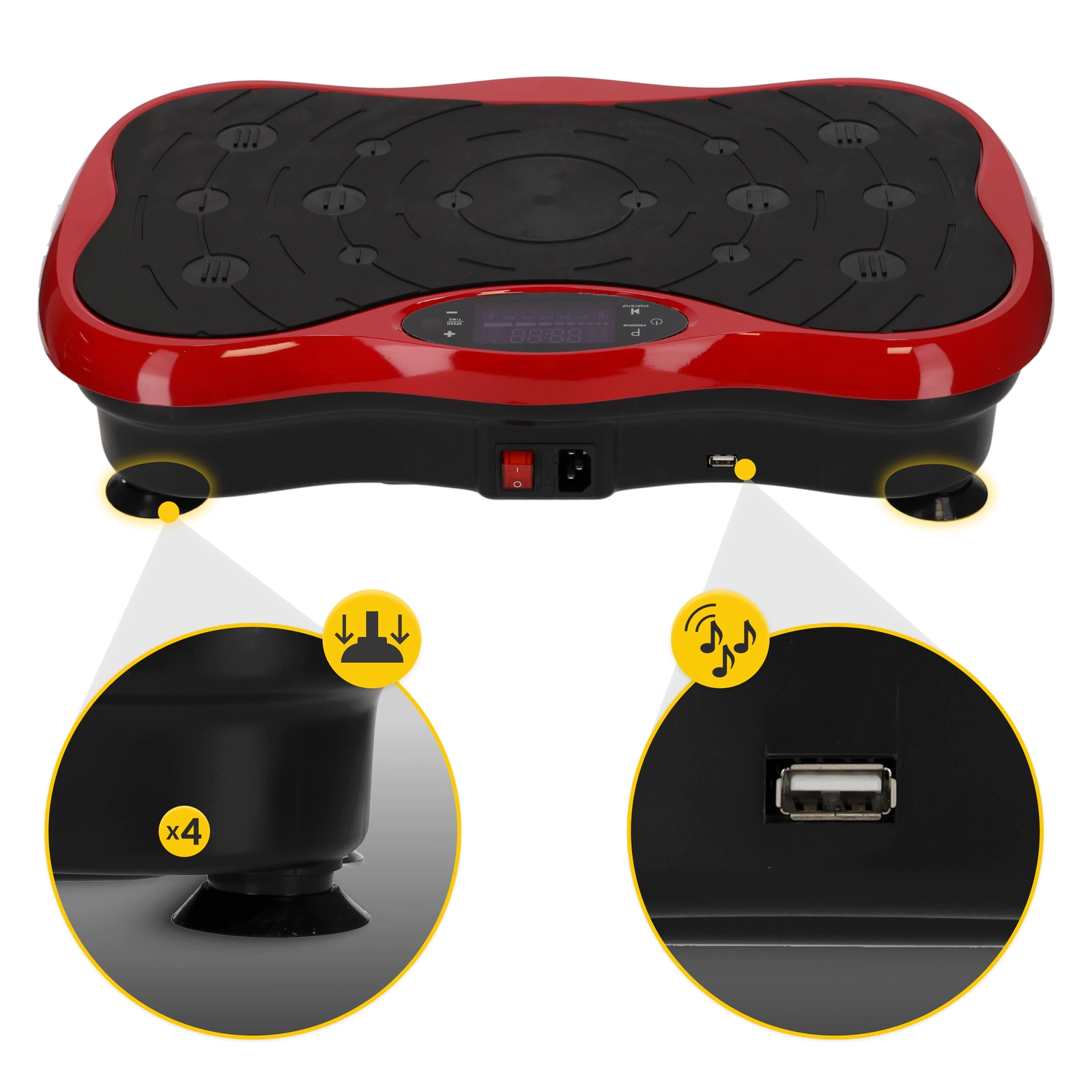 Platforma wibracyjna do ćwiczeń ULTRA+ 4FIZJO, wyposażona w pilot, głośniki Bluetooth i antypoślizgową powierzchnię, idealna dla osób, które chcą poprawić swoją sylwetkę, wzmocnić mięśnie i zredukować tkankę tłuszczową (CZERWONA)