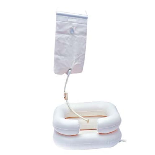 Nadmuchiwany basen z odpływem oraz zasobnik na wodę i słuchawka prysznicowa tworzą zestaw do mycia głowy w pozycji leżącej. Przeznaczony dla osób długotrwale leżących w warunkach domowych lub w podróży. Basen pompuje się ustami. Wykonany jest z trwałego, nieprzemakalnego materiału. Jeden z boków basenu jest obniżony i wyprofilowany pod szyję pacjenta dla większego komfortu użytkowania. Kładzie się na nim głowę pacjenta. Po nalaniu wody do zasobnika należy go zawiesić np. na stojaku na kroplówki czy wieszaku. Z zasobnika woda płynąc przez wężyk trafia do słuchawki prysznicowej, która daje szeroki, wygodny strumień wody. Po umyciu głowy, basen można łatwo opróżnić bez ryzyka rozlania się wody wylewając ją np. do wiaderka przy pomocy wężyka odpływowego.