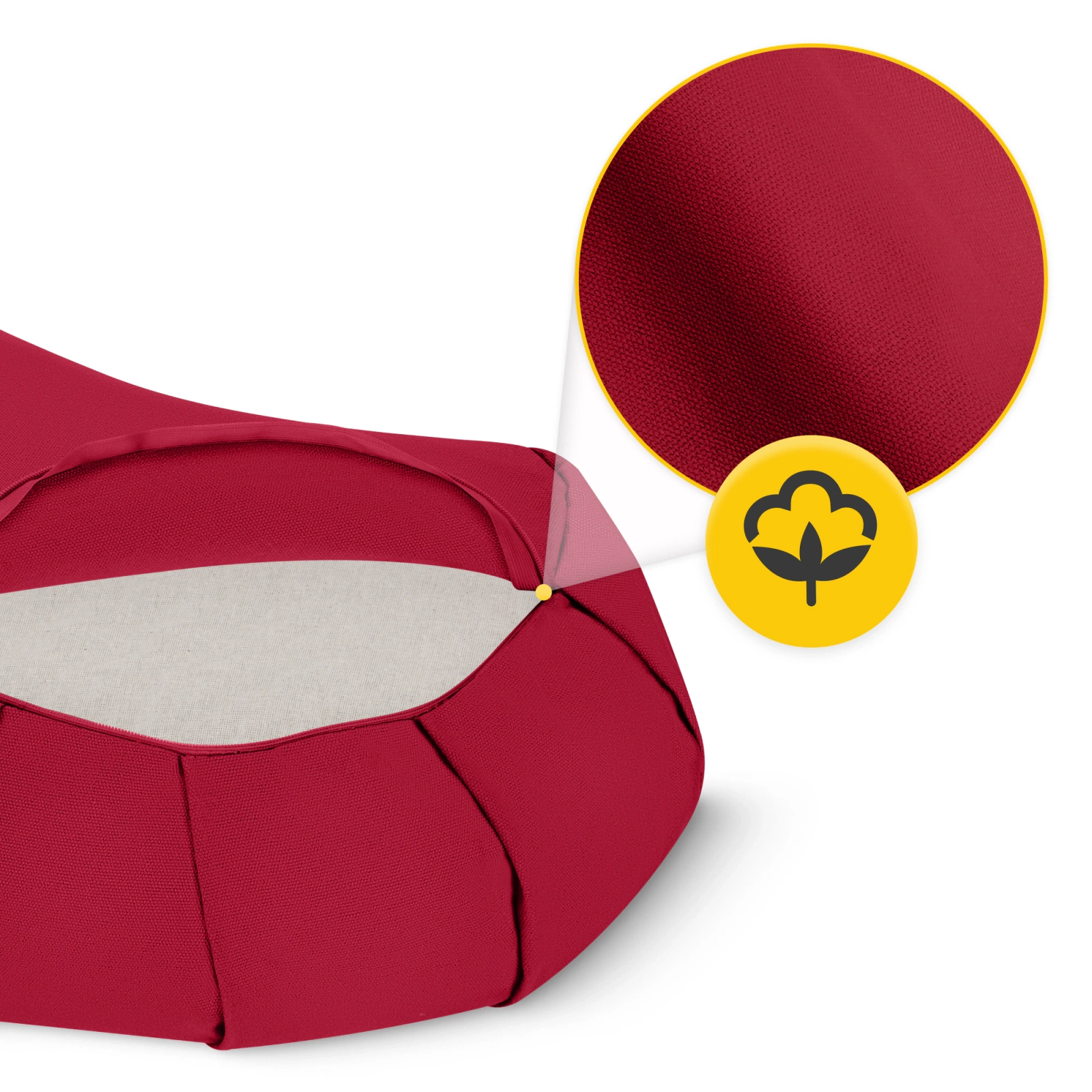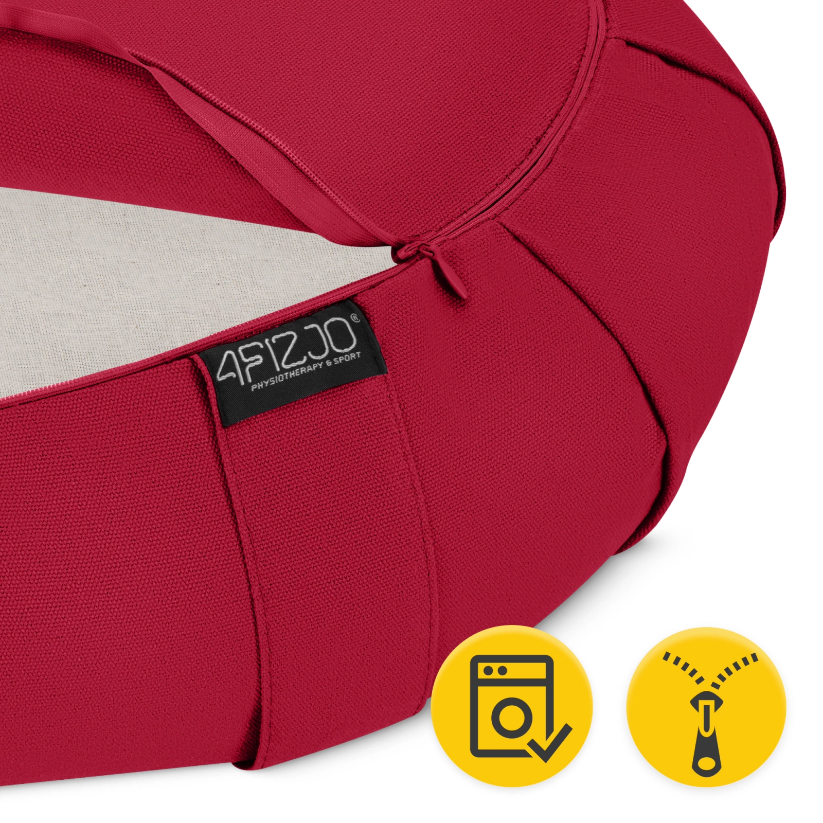 Poduszka do medytacji i jogi ZAFU 4FIZJO półksiężyc czerwona – ergonomiczna poduszka z naturalnym wypełnieniem z łuski gryki i bawełnianym pokrowcem