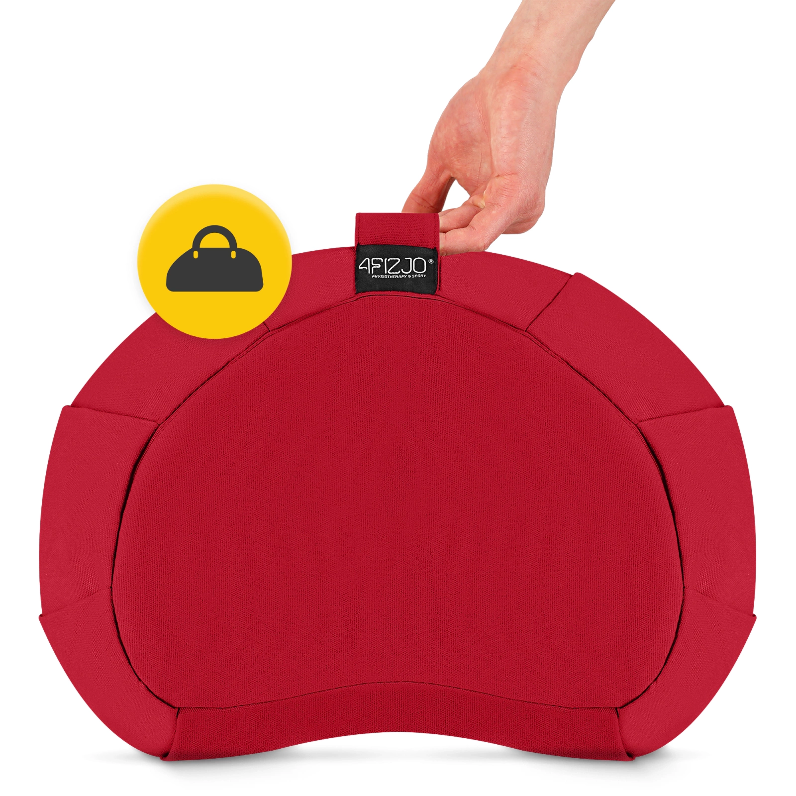 Poduszka do medytacji ZAFU półksiężyc 4FIZJO w eleganckim czerwonym kolorze to doskonały wybór dla osób praktykujących medytację, jogę lub pranajamę. Jej ergonomiczny kształt półksiężyca ułatwia utrzymanie prawidłowej postawy, odciążając biodra i kręgosłup. Naturalne wypełnienie z łuski gryki dopasowuje się do ciała, zapewniając stabilność i komfort, a bawełniany pokrowiec jest trwały i przyjemny w dotyku. Poduszka posiada zintegrowany uchwyt, dzięki czemu jest łatwa w przenoszeniu, oraz estetyczny, minimalistyczny design idealny do domu, studia jogi lub przestrzeni relaksu.