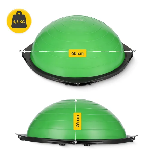 Półpiłka równoważna Balance Ball 4FIZJO, do ćwiczeń areobowych, równoważnych i rehabilitacyjnych, poprawiająca równowagę, stabilność i koordynację ruchową (ZIELONA)