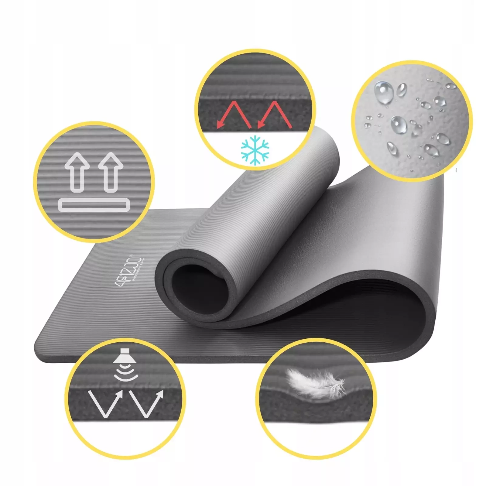 Mata do ćwiczeń firmy 4FIZJO to mata wykonana z wysokiej jakości pianki NBR zapewniającej wysoki komfort użytkowania. Dzięki swoim właściwościom, mata znajduje szerokie zastosowanie na siłowniach, klubach fitness, gabinetach rehabilitacji czy też w domowym zaciszu. Idealnie nada się do ćwiczeń ogólnorozwojowych, jogi, pilatesu i fitnessu. Pianka NBR, czyli wysokiej klasy syntetyczny kauczuk, skutecznie amortyzuje i wygłusza odgłosy skoków czy wykroków. Posiada właściwości antypoślizgowe, zapewniając bezpieczeństwo nawet podczas intensywnego i dynamicznego treningu. Grubość maty daje poczucie komfortu wykonywanych ćwiczeń niezależnie od pozycji. Przewagą tej maty nad innymi jest dobre przyleganie do podłoża i brak zawijania się jej końców w trakcie ćwiczeń.