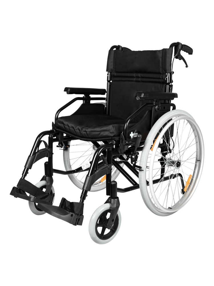 Wózek inwalidzki RF-3 Cruiser Active to lekki, funkcjonalny i wygodny wózek zarówno dla użytkownika jak i opiekuna. Posiada aluminiową, składaną ramę z podwójnym krzyżakiem. Zapewnia nie tylko wytrzymałość, ale także lekkość, ważąc zaledwie od 13,3 kg. Najważniejszą cechą tego wózka jest jego znaczący udźwig do 135 kg, co czyni go odpowiednim dla różnych użytkowników. Wózek posiada możliwość złożenia oparcia w połowie, co znacznie ułatwia jego transport i przechowywanie. To wygodne rozwiązanie sprawia, że wózek można łatwo zabierać ze sobą w podróż czy przechowywać w ograniczonej przestrzeni. Wózek RF-3 Cruiser Active jest także wyposażony w pas biodrowy, który zapewnia dodatkowe bezpieczeństwo i stabilność. Posiada także koła anty wywrotne zwiększające bezpieczeństwo i pewność podczas poruszania się. Dodatkowo, w zestawie znajduje się poduszka piankowa, która nie tylko zapewnia wygodne siedzenie, ale także pomaga w profilaktyce przeciwodleżynowej. Wózek inwalidzki RF-3 Cruiser Active oferuje również wiele innych praktycznych funkcji. Został zaprojektowany w eleganckim kolorze czarnym, a jego tapicerka jest łatwa do zmywania, komfortowa i odporna na zapalenie. Podnóżki są odchylane na zewnątrz i do wewnątrz, z regulacją wysokości i możliwością demontażu. W zestawie znajduje się również zestaw narzędzi i pompka. Wózek RF-3 Cruiser Active został zaprojektowany z myślą o wygodzie zarówno użytkownika, jak i opiekuna. Posiada ergonomiczne rączki dla asystenta, paski na stopy przy podnóżkach, które zabezpieczają przed zsunięciem się stóp z platformy, oraz odblaski na tylnych kołach dla większego bezpieczeństwa. Dodatkowe cechy wózka to szybkozłączki w tylnych kołach, mocne metalowe hamulce dla opiekuna z regulacją docisku, odchylane boczki oraz podłokietniki z regulacją wysokości. Wózek posiada 5-letnią gwarancję na ramę.