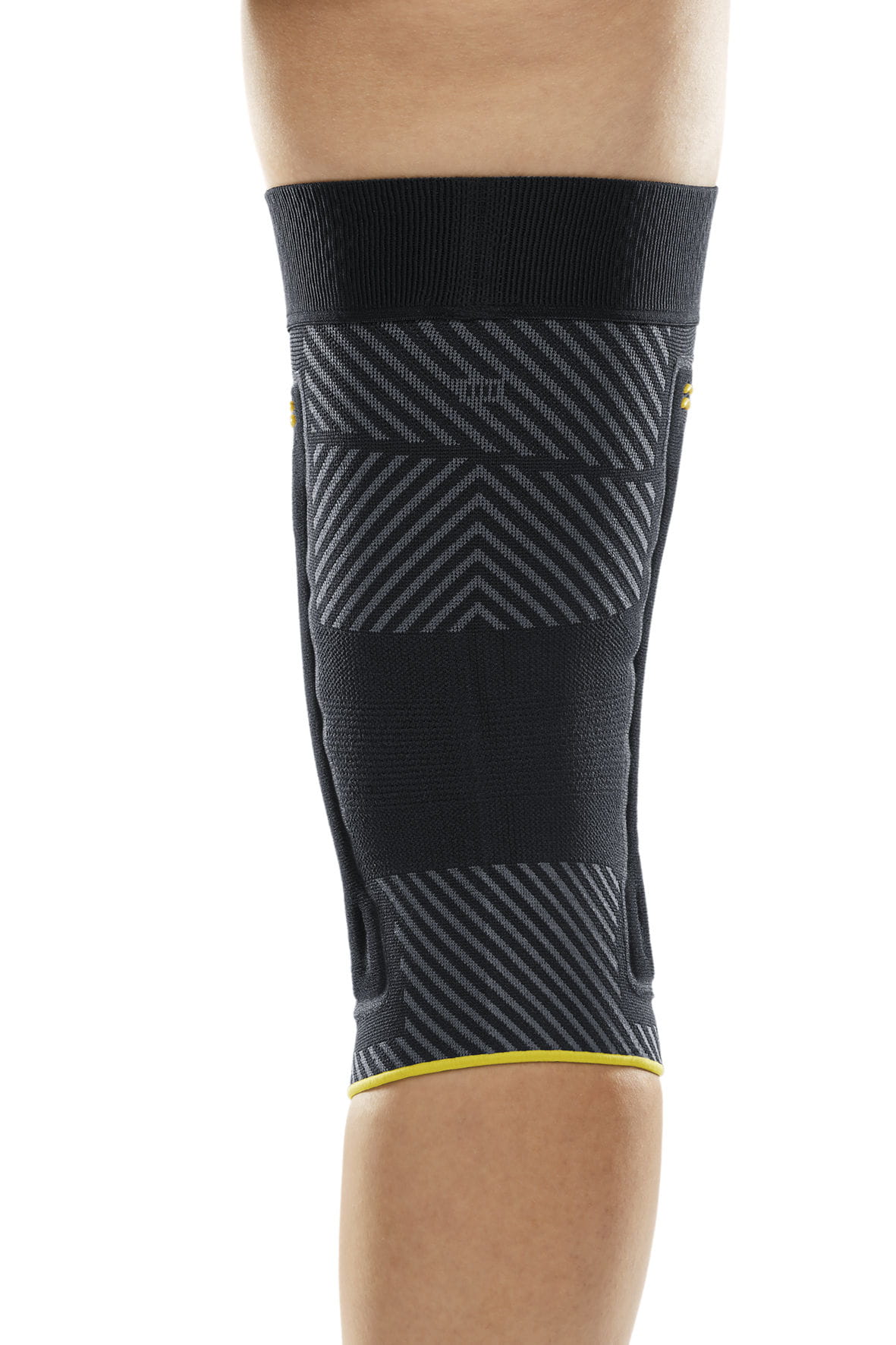 Stabilizator wyposażony jest w boczne uchwyty grip-on ułatwiające zakładanie, a ergonomiczny krój zapewnia bezpieczne i praktycznie pozbawione zagnieceń dopasowanie. Dzięki ściągaczowi nie zsuwa się z nogi. Rozmiar peloty uciskowej jest dostosowany do każdego rozmiaru osobno, a strefa ruchu XL wokół stawu kolanowego gwarantuje maksymalną elastyczność dokładnie tam, gdzie jest to potrzebne (Performance Fit).