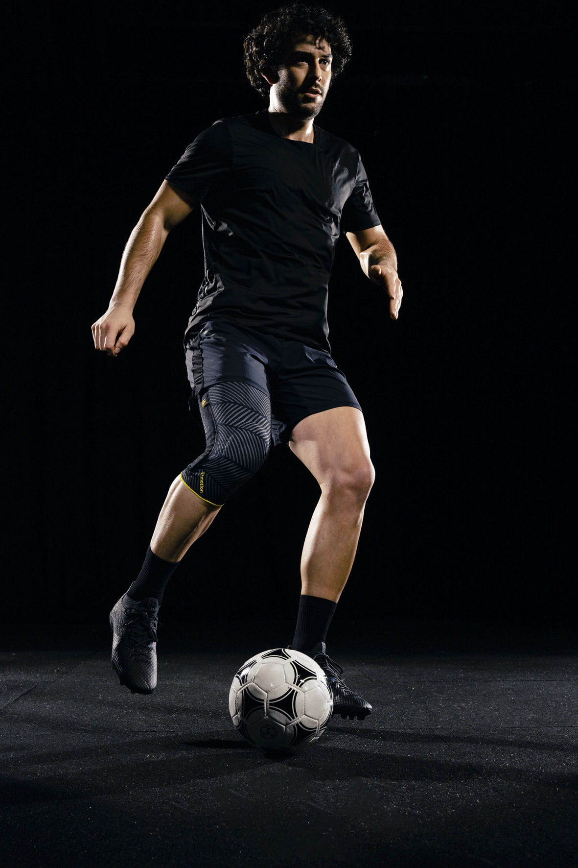 Materiał kompresyjny jest o 10 procent cieńszy i o 25 procent mocniejszy w porównaniu z innymi dzianinami**. Silikonowo-kwarcowa pelota 3D oferuje kojący efekt masażu podczas ruchu i stymuluje krążenie krwi, co przyczynia się do przyspieszenia redukcji obrzęków i krwiaków (Performance Compression).