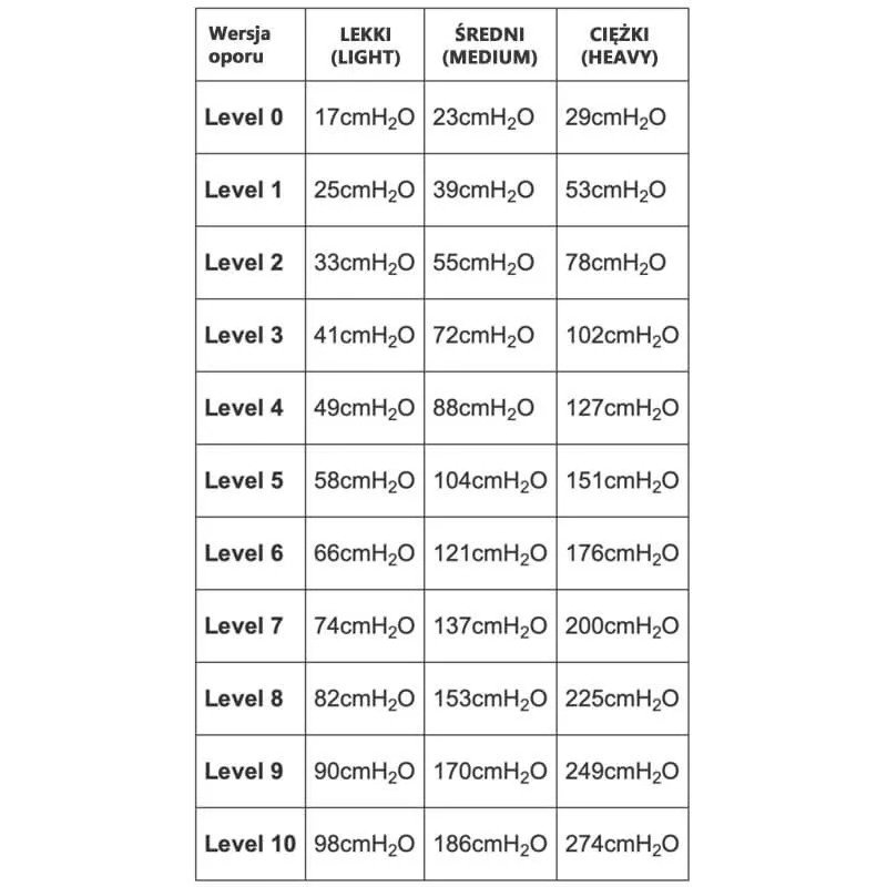 - Zakres oporu: 23-186 cmH2O (wersja średni)