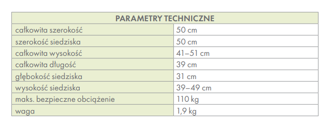 - Możliwość regulacji wysokości – dopasowanie do wzrostu użytkownika,