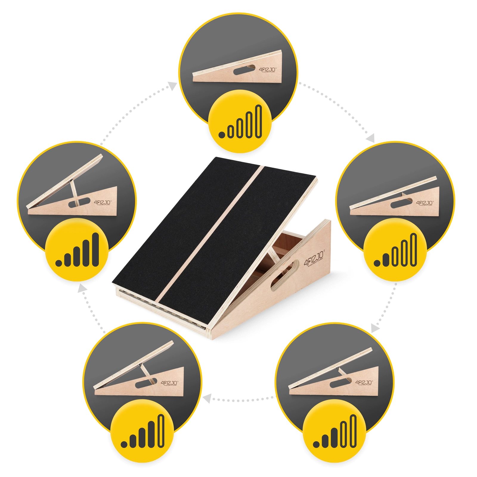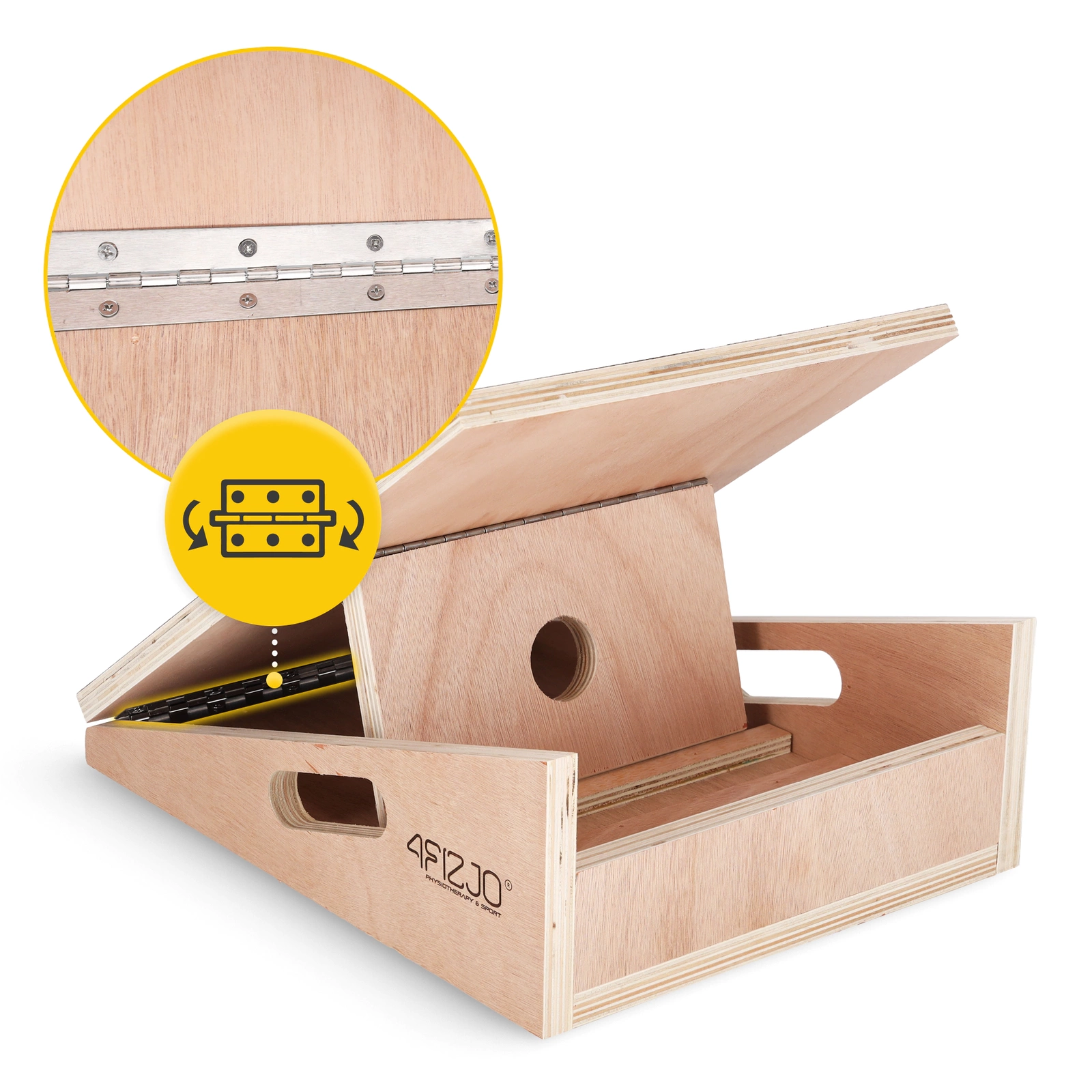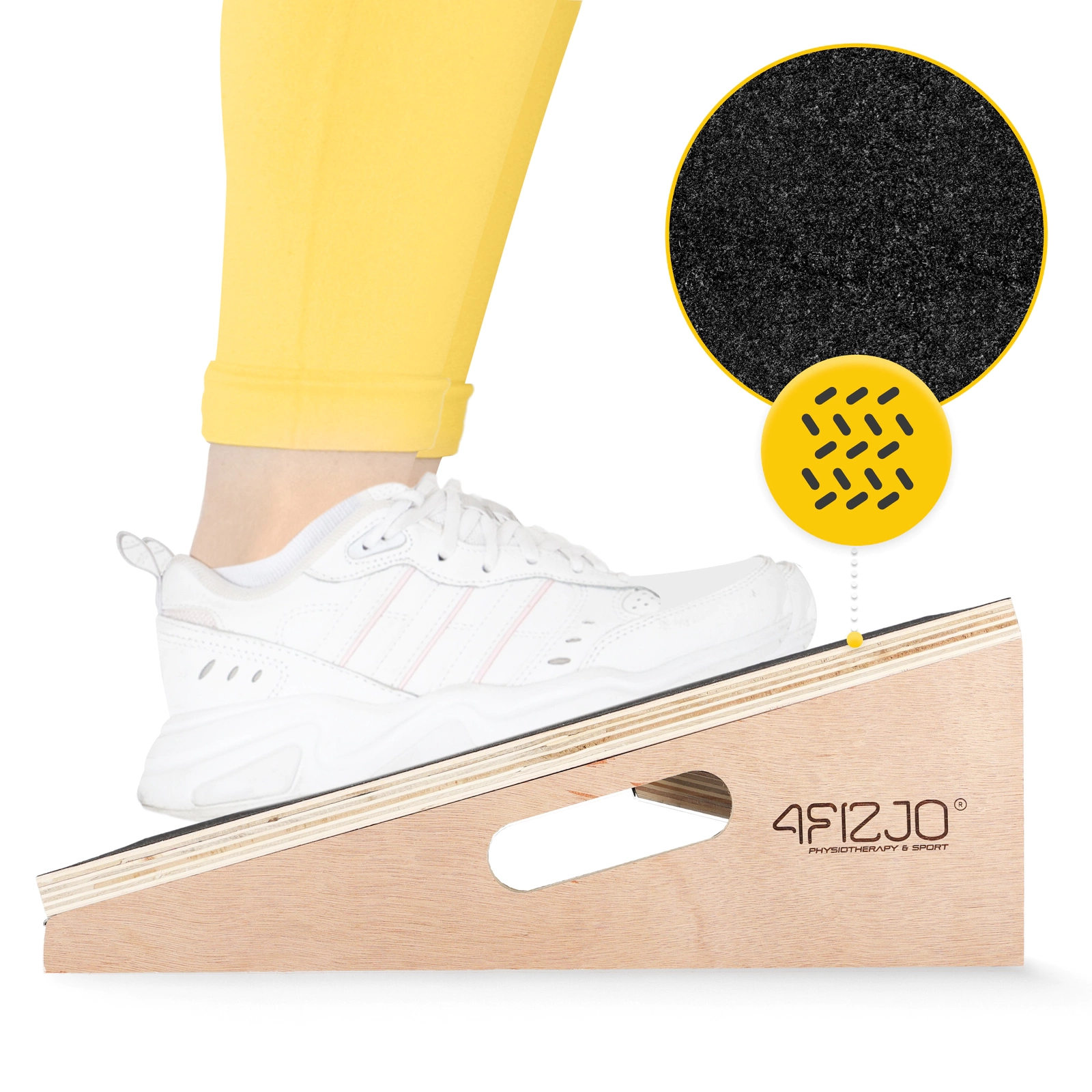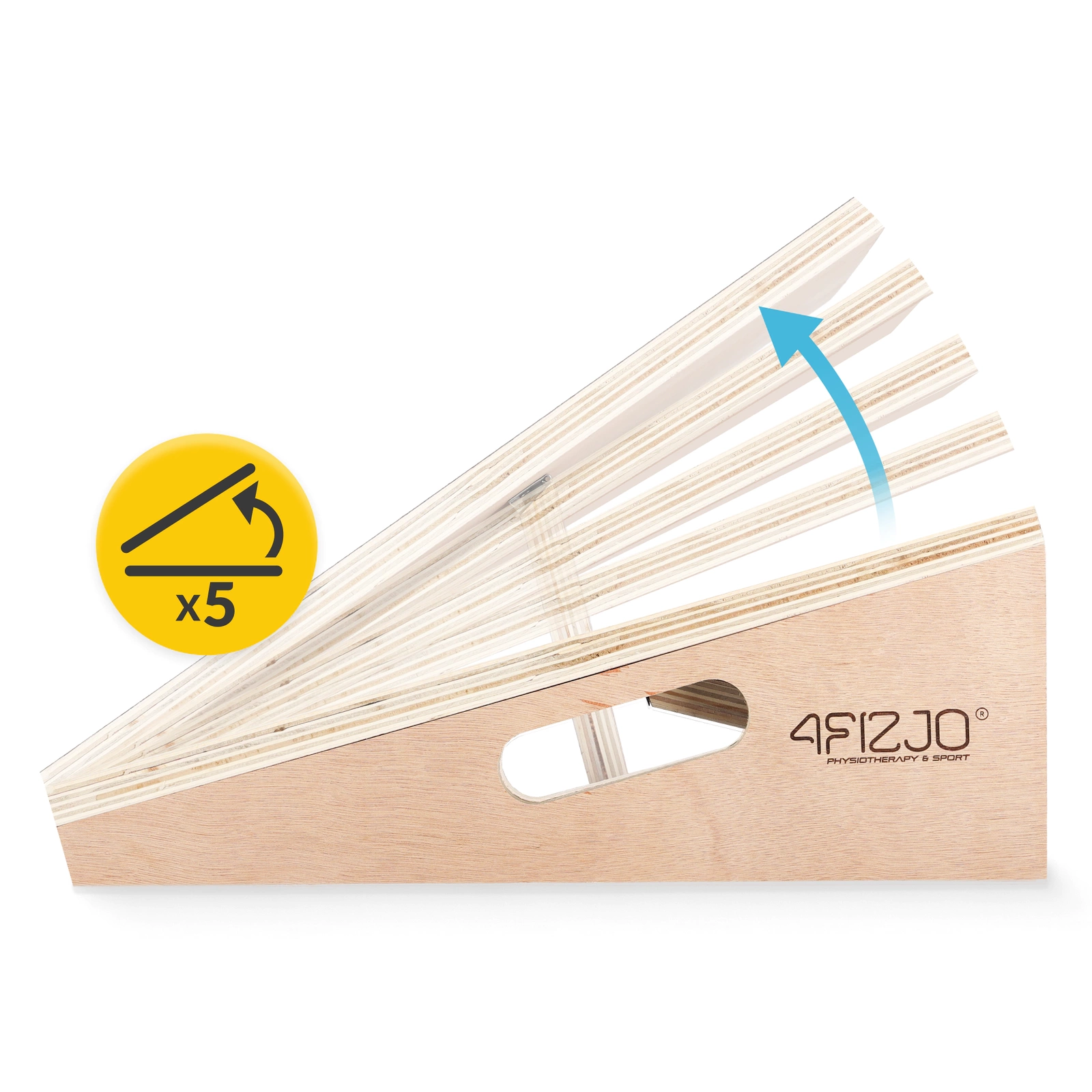 Wykonana z naturalnej sklejki, drewniana platforma do rozciągania SLANT BOARD 4FIZJO z pięciostopniową regulacją kąta nachylenia