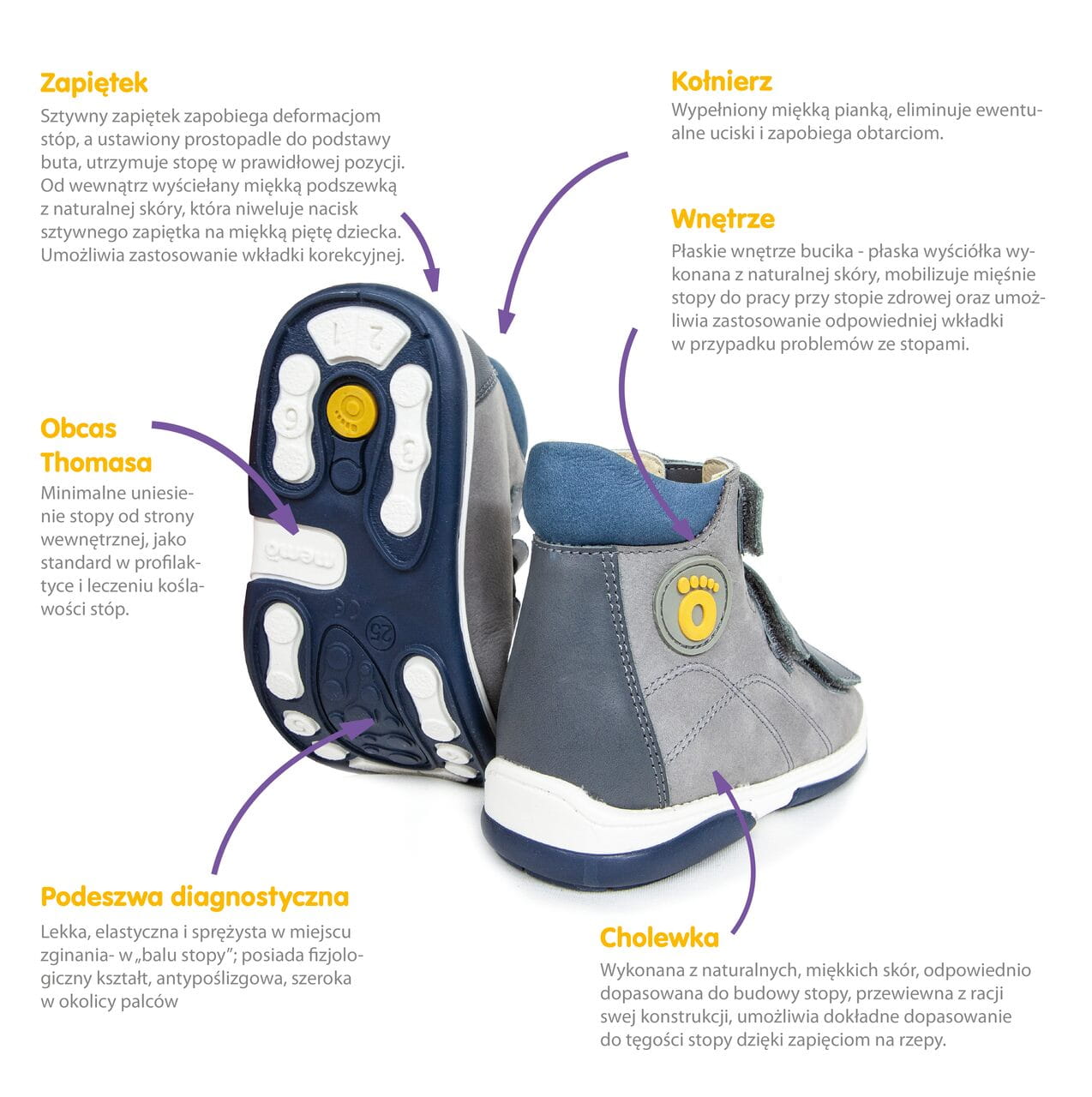 Obuwie zdrowotne dla dzieci stanowi istotny temat, którego znaczenie dla rozwoju najmłodszych nie może być lekceważone. Buty pełnią znaczącą rolę nie tylko w zapewnieniu komfortu i wygody, ale również w prawidłowym rozwoju stóp oraz całego układu kostno-mięśniowego. Buciki Memo to obuwie zdrowotne pełniące funkcję profilaktyczną, zapobiegając przede wszystkim rozwojowi wad postawy oraz powstawaniu płaskostopia i koślawości stóp oraz kolan u dzieci. Dzięki zastosowaniu unikatowych technologii buciki Memo gwarantują profesjonalne wsparcie i prawidłowy rozwój dziecięcych stóp.