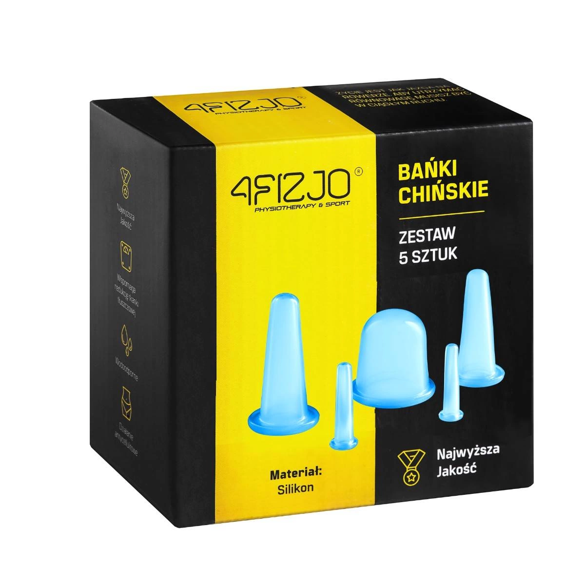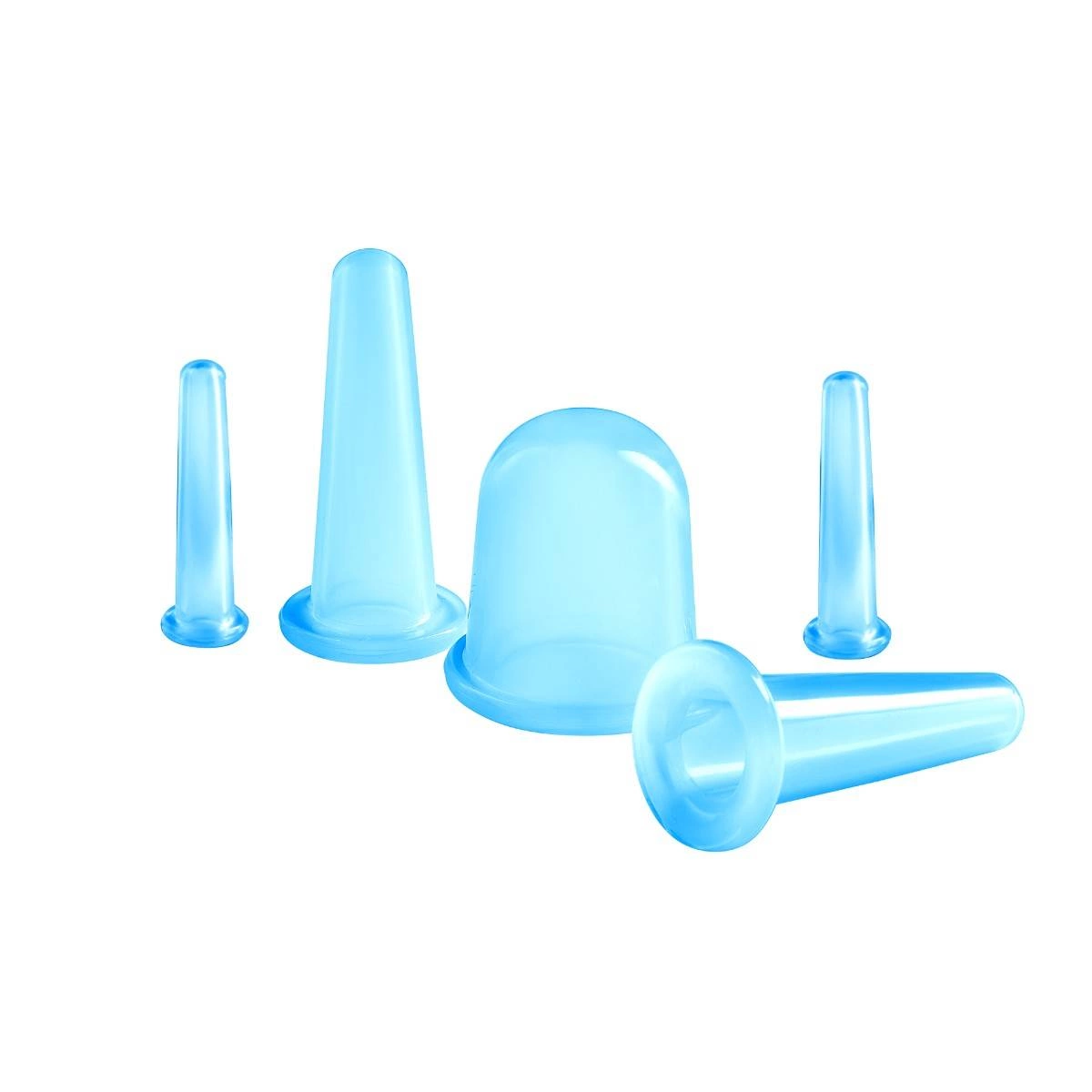 Zestaw 5 chińskich silikonowych baniek do masażu twarzy FACE+ 4FIZJO, w różnych rozmiarach, pobudzających krążenie krwi, poprawiających elastyczność skóry i odprężających mięśnie (NIEBIESKIE)