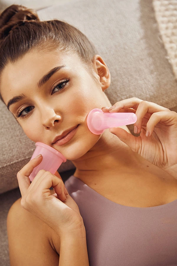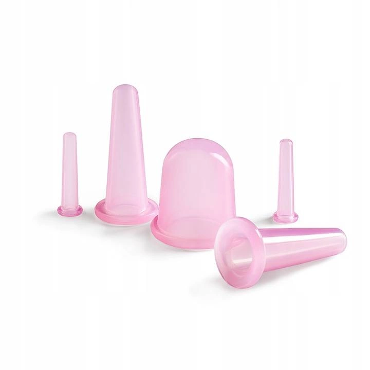 Zestaw 5 chińskich silikonowych baniek do masażu twarzy FACE+ 4FIZJO, w różnych rozmiarach, pobudzających krążenie krwi, poprawiających elastyczność skóry i odprężających mięśnie (RÓŻOWE)
