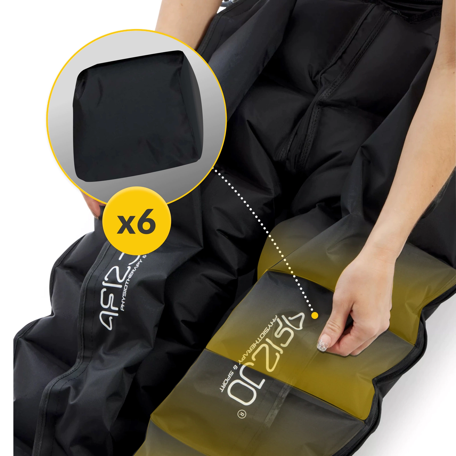 Zaawansowana presoterapia do użytku domowego i gabinetowego. Dotykowy panel + pilot, 6 programów masażu, płynna regulacja czasu i ciśnienia 30–250 mmHg. Selektor komór pozwala pominąć wrażliwe obszary. Spodnie 6-komorowe z suwakami bocznymi i rzepem w pasie ułatwiają dopasowanie. Funkcja ON/OFF działa jak szybkie bezpieczeństwo przy zbyt dużym ucisku.
