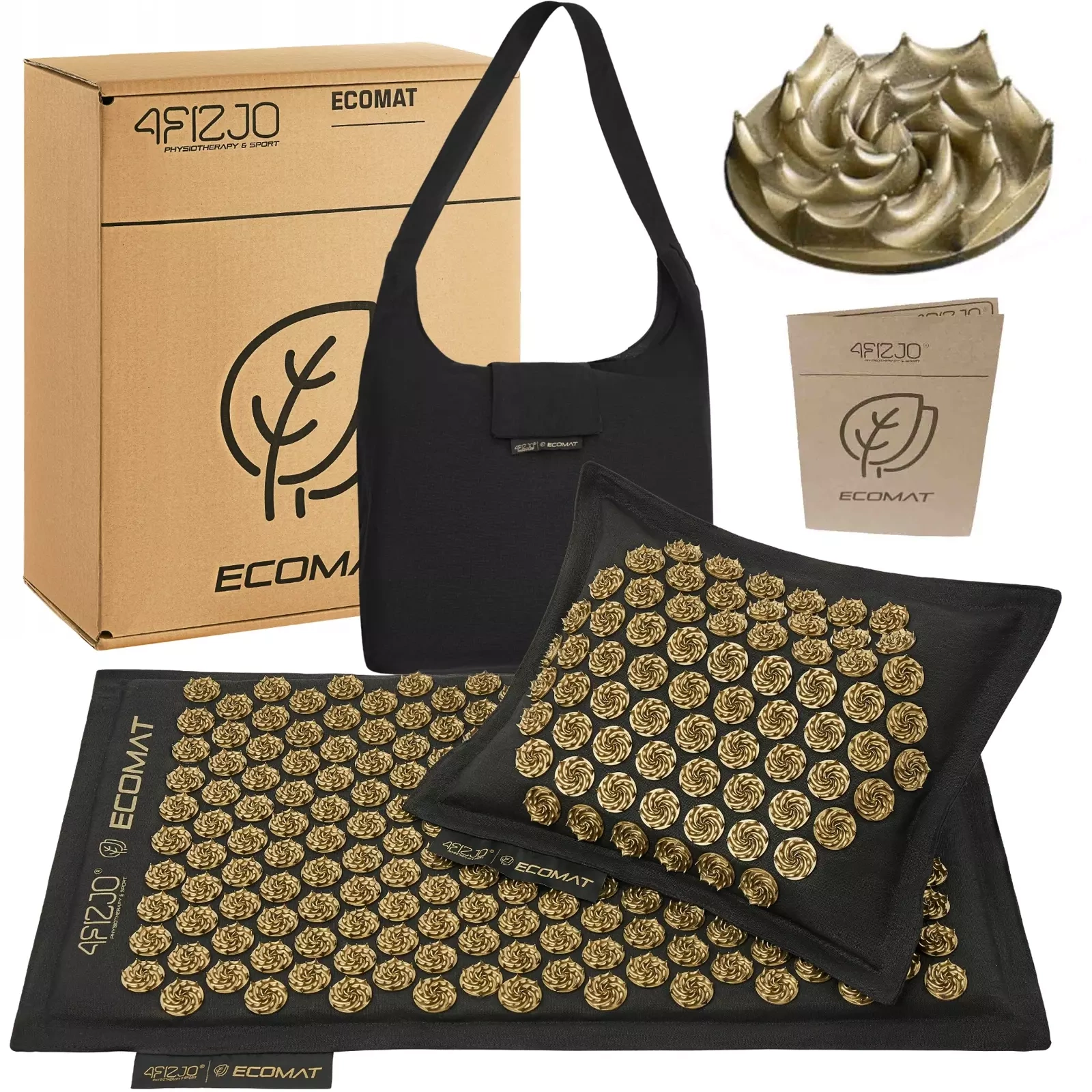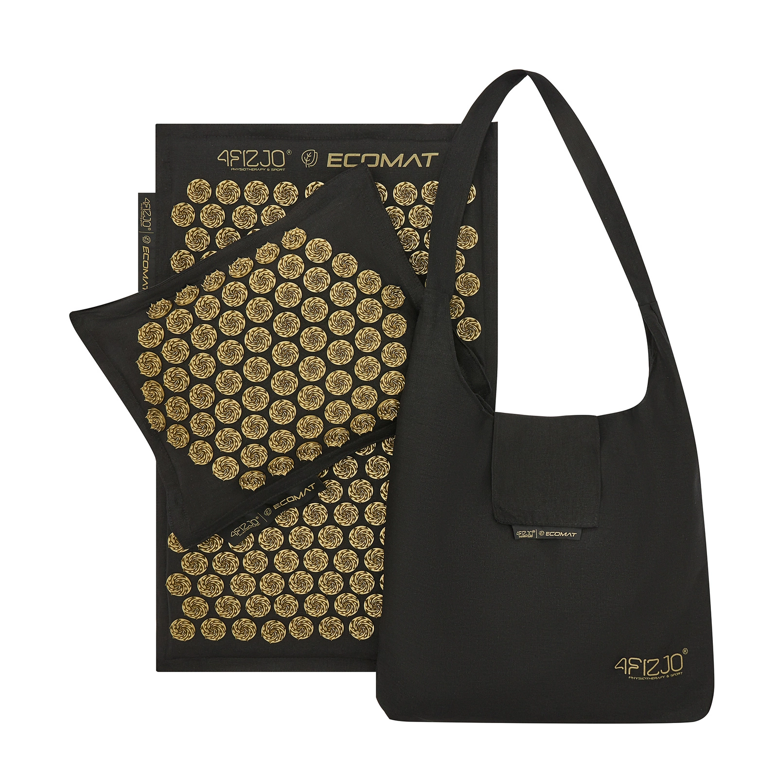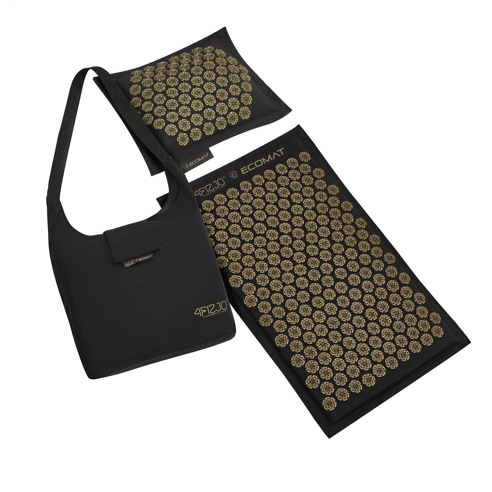 Taniej w zestawie!ECO MATA z poduszką, do akupresury, z łuskami gryki i kokosem 68x42 (CZARNO-ZŁOTA)
