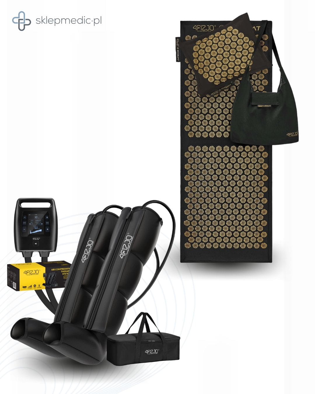 Zestaw promocyjny „Lekkość nóg & relaks ECO PRO” – aparat do drenażu limfatycznego ACTIVE C4 + duża lniana mata akupresurowa 4FIZJO 110×42
