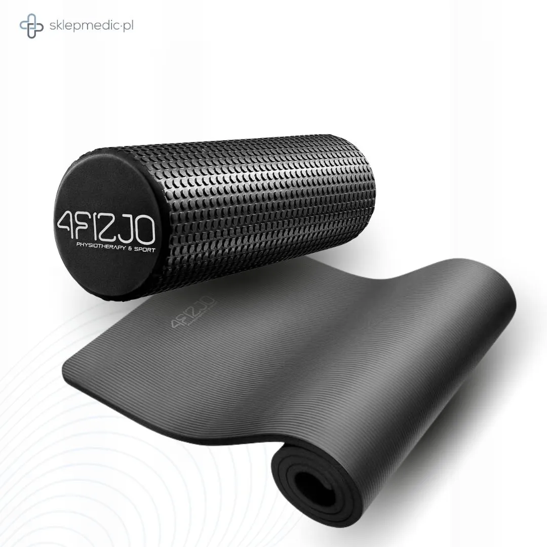 Zestaw promocyjny „Siła & Regeneracja Pro” – gruba mata do ćwiczeń 4FIZJO NBR czarna (180×60×1,5 cm) + roller do masażu CARE+ 4FIZJO czarny 45 cm